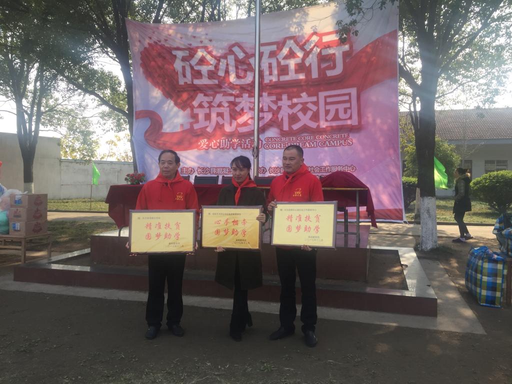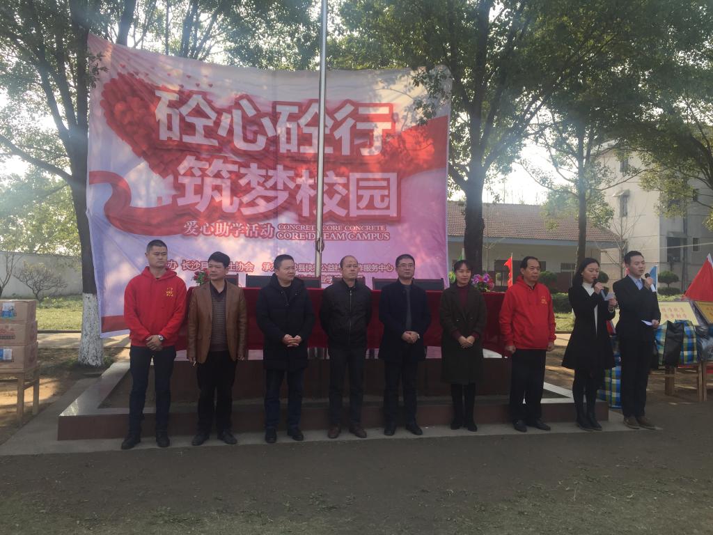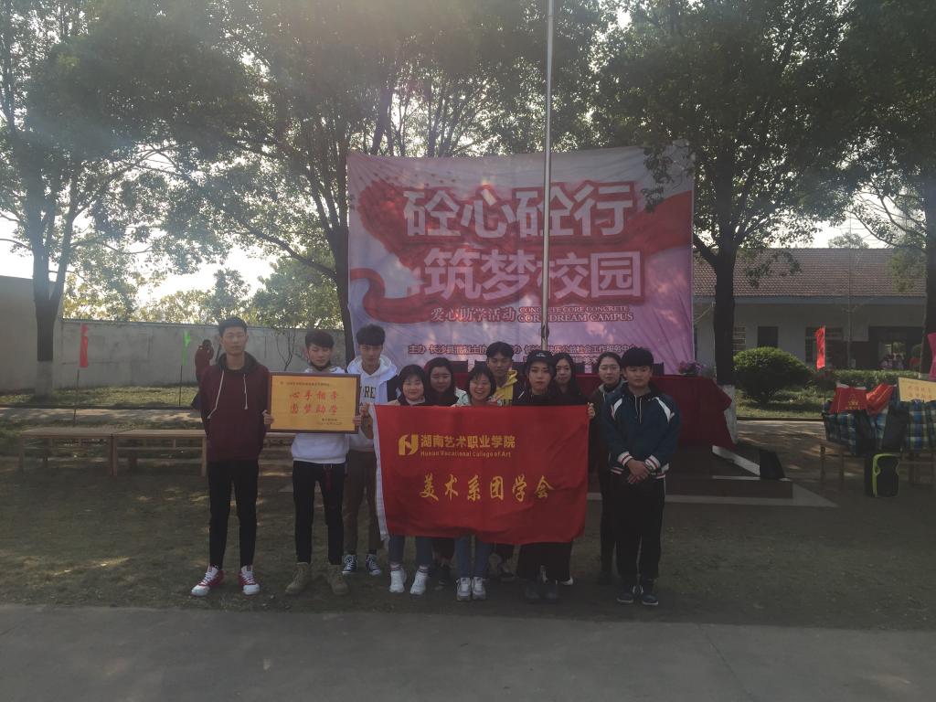 2017年12月8日,益阳南县东乐完小“砼心砼行,筑梦校园”爱心助学活动取得圆满成功,本次公益活动由长沙县混凝土协会主办,太阳娱乐商城8722美术系、长沙县快乐公益社会工作服务中心承办。美术系党支部书记邹德强、美术系主管学生工作副主任李莉及美术系曾佳、陈非凡老师一同参与了此次公益助学活动。本次活动我系给予大力支持,团学会负责策划、执行,团学会主席姚思远、部长周艳担任此次活动主持。