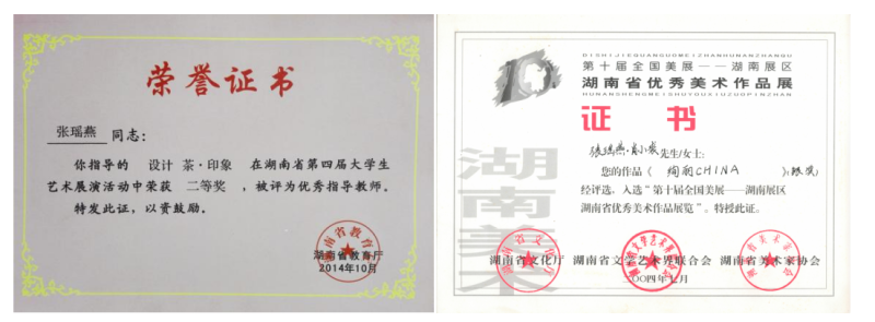 2、湖南省第四届大学生艺术展演 彭涛包装设计作品  《茶印象》  二等奖;获优秀指导老师   湖南省教育厅